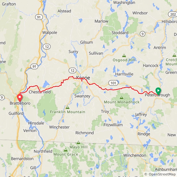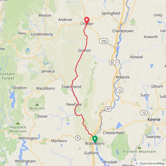 Cycle to Brattleboro. We head west back to our start point at Brattleboro.