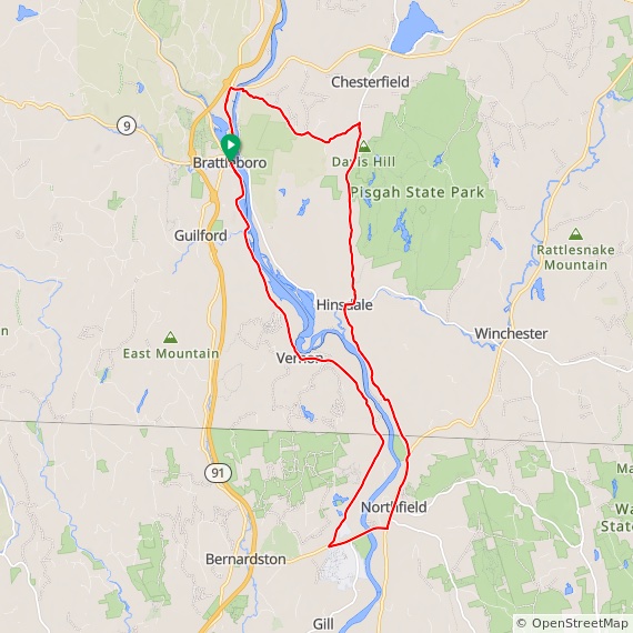 Circular Ride from Brattleboro. Today we will explore the towns and villages along the Connecticut River Valley, starting in Vermont, passing through New Hampshire and touching on Massachusetts.