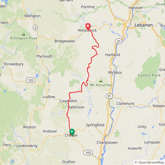 Circular Ride from Woodstock. A ride with two climbs passing through the ski resort of Killington.