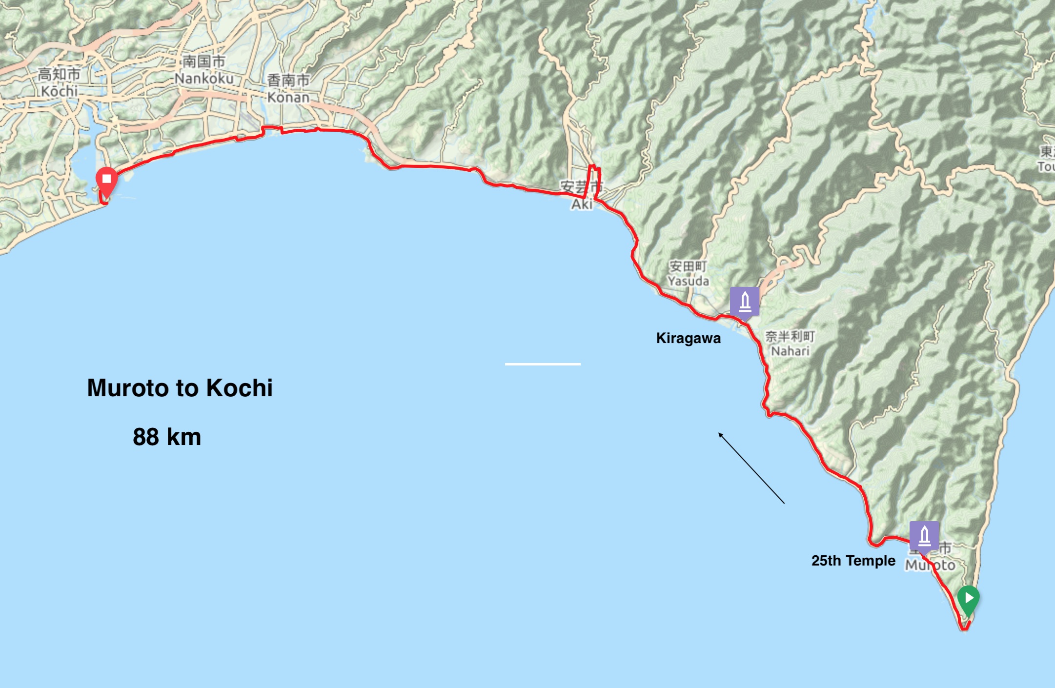 We continue our trip down the Shimanto River. There are a number of bridges with no guardrails spanning the Shimanto River, so be careful. It is to reduce resistance and to prevent the bridge from being washed away during the times of flood. Through Nakamura and onto the coastal road which undulates as part of the Ashizuri Uwajima National Park. We end our ride at Cape Ashizuri, the southernmost point of Shikoku, where we call in the 38th Kongofukuji temple.