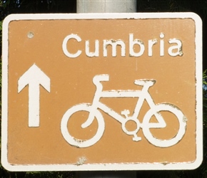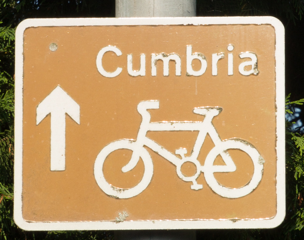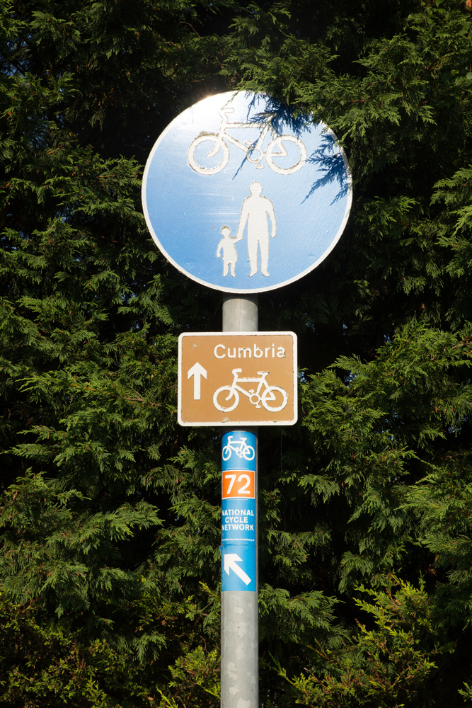 Cumbria Cycleway Sign on the A689. There are 3 of them close together