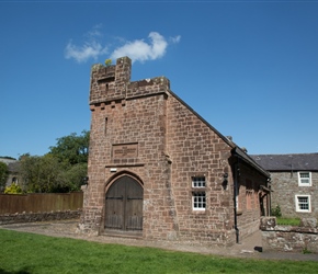 To exit Brampton, you pass to the right of Moot Hall which is now the information office