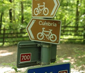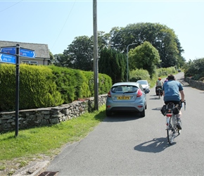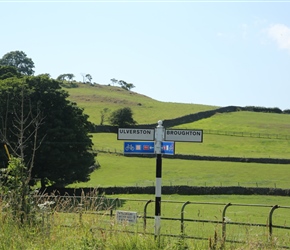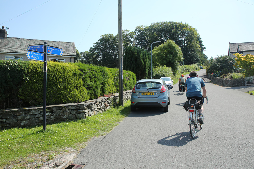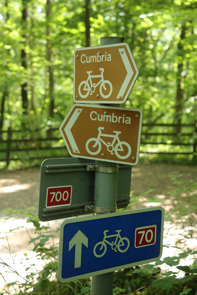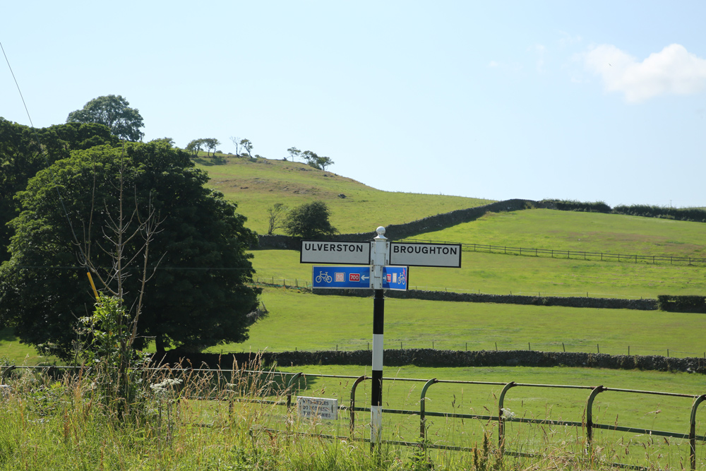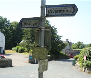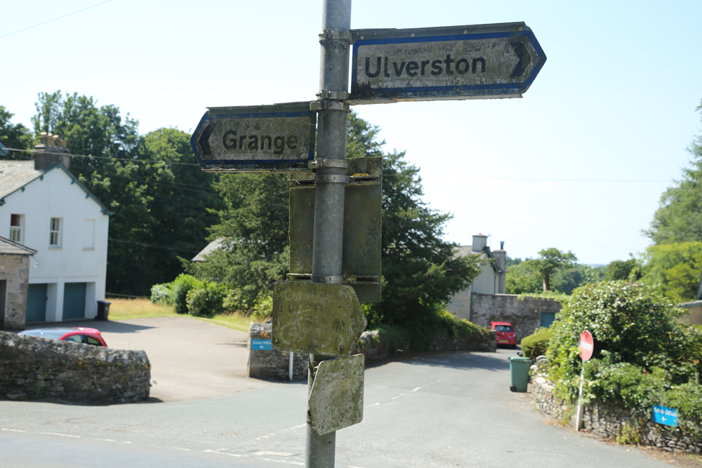 Look closely there are 2 scrubbed out Cumbria Cycleway signs. These point to the road that led to the bridleway at Cartmel