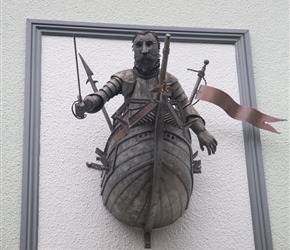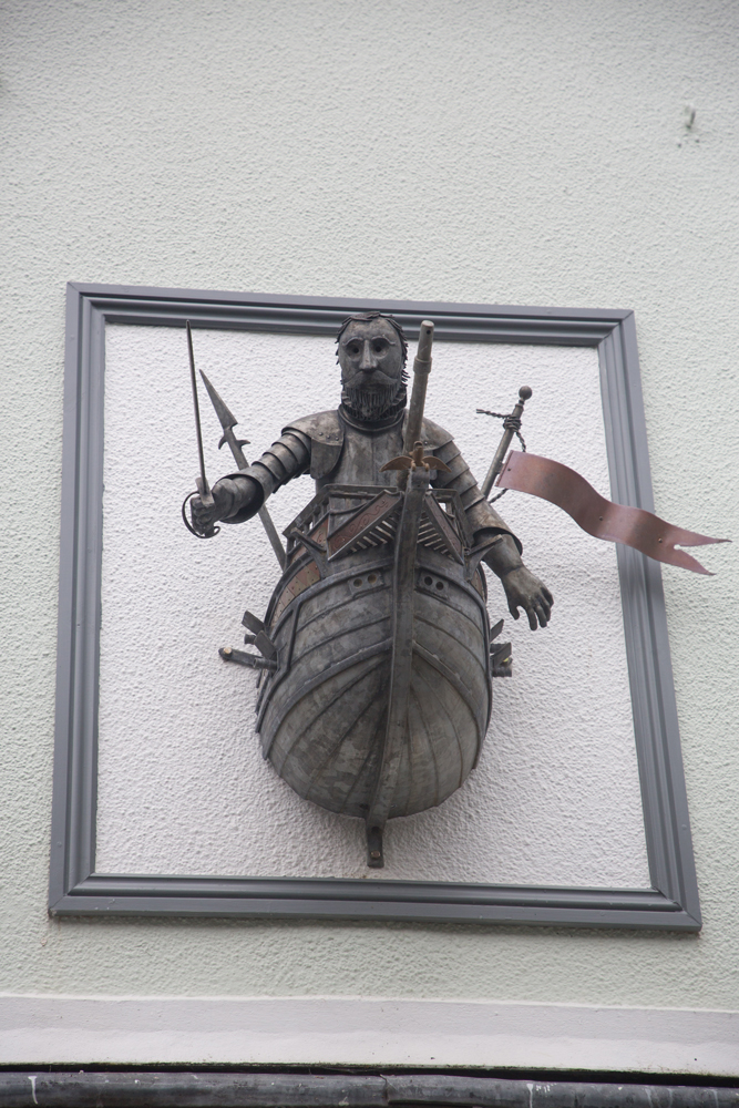 Walk along Bideford quayside and turn left along Cooper Street. These beautiful statues are attached to the walls. Here Sir Richard Grenville is featured, captain of the Mary Rose