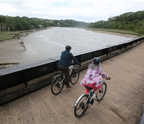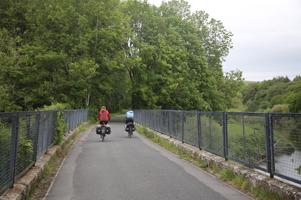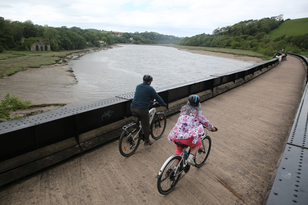 Cyclists enjoy the Tarka Trail near the Rolle Canal aqueduct