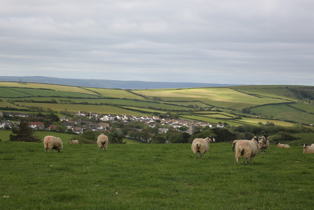 You are rewarded with lovely views as you climb higher after the cyclepath on roads now. Here the sheep overlook Georgeham