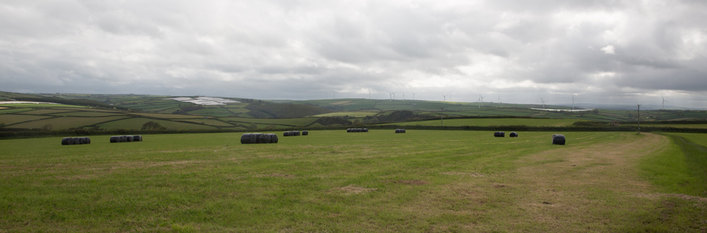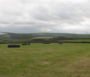 A typical West Coutry view these days. Big bale silage and distant wind turbines