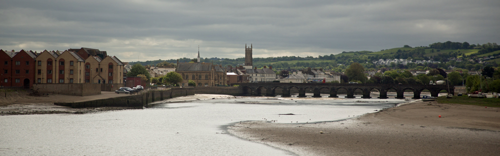 Barnstaple from the trail. The route bypasses the centre preferring to go over the Taw Estuary Bridge. However take the time to visit the town, there is a historic quay and it's an attractive place
