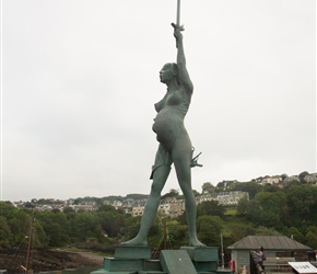 Verity, designed by Damian Hurst, sited at Ilracombe Harbour, the start of the trail