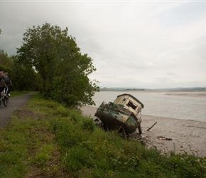 An abandoned boat has seen better days, but makes a good scenic backdrop