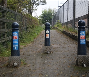 The first part of the route is along a dedicated cyclepath. Here you pass under Lee Bridge
