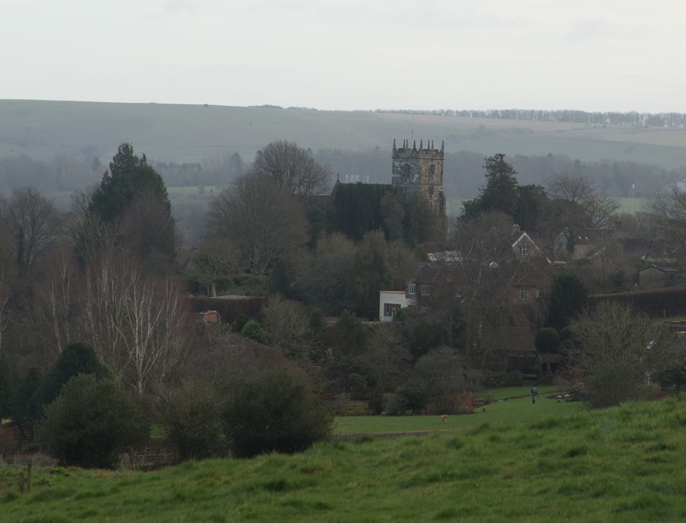 Donhead St Mary appears to the left with a good view across Wiltshire