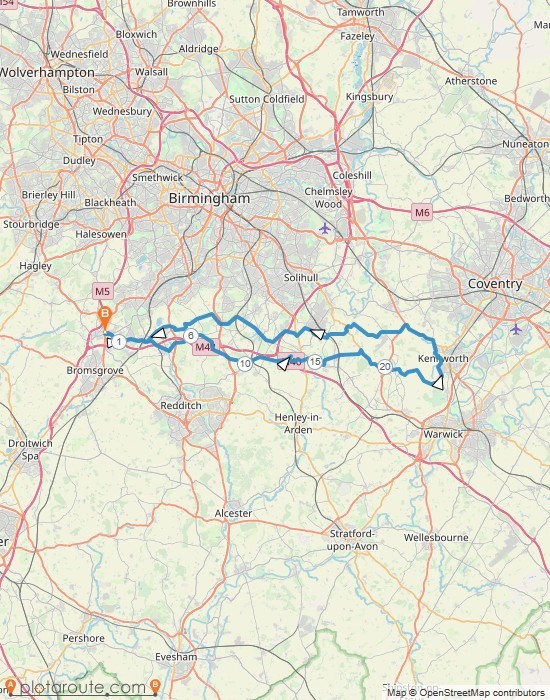 We will meet a Bromsgrove Travelodge at 10am, heading off once we have had a chance to say "hello". Our first stop is in Droitwich after 10 miles for a quick coffee, then we carry on to Worcester and straight out the other side until we get to Bransford. This is the location of both our lunch stop and the Tithe Barn (free entry), about a mile further on down the road. After lunch, we head back through Worester on a different route, with a possible late cafe stop before heading back to our base in Bromsgrove. There are a few options for dinner within a short walk of the Travelodge.