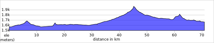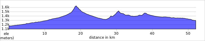 The terrain is variable. Much is rolling pastureland, but there are some steeper climbs off road.