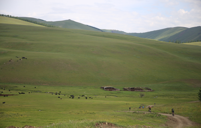This morning, we negotiate 3 short climbs followed by fast descents on packed soil and arrive at Tsenkher – a lush valley famous for its mineral hot spring. Although somewhat crowded with local and foreign travelers during the short summer season, it certainly feels good to soothe your muscles maybe with a beer in your hand. Relaxing massage and laundry services are available. We spend another night in traditional Mongolian tents.