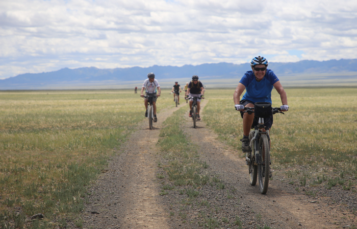 The cycling is mostly on Mongolian tarmac. This is comprised of numerous hard-based tracks across the Mongolian steppe. These are used by vans, motorbikes and the very occasional car. They are mostly very firm under you wheels, though you may experience the occasional patch of loose sand and rocks.