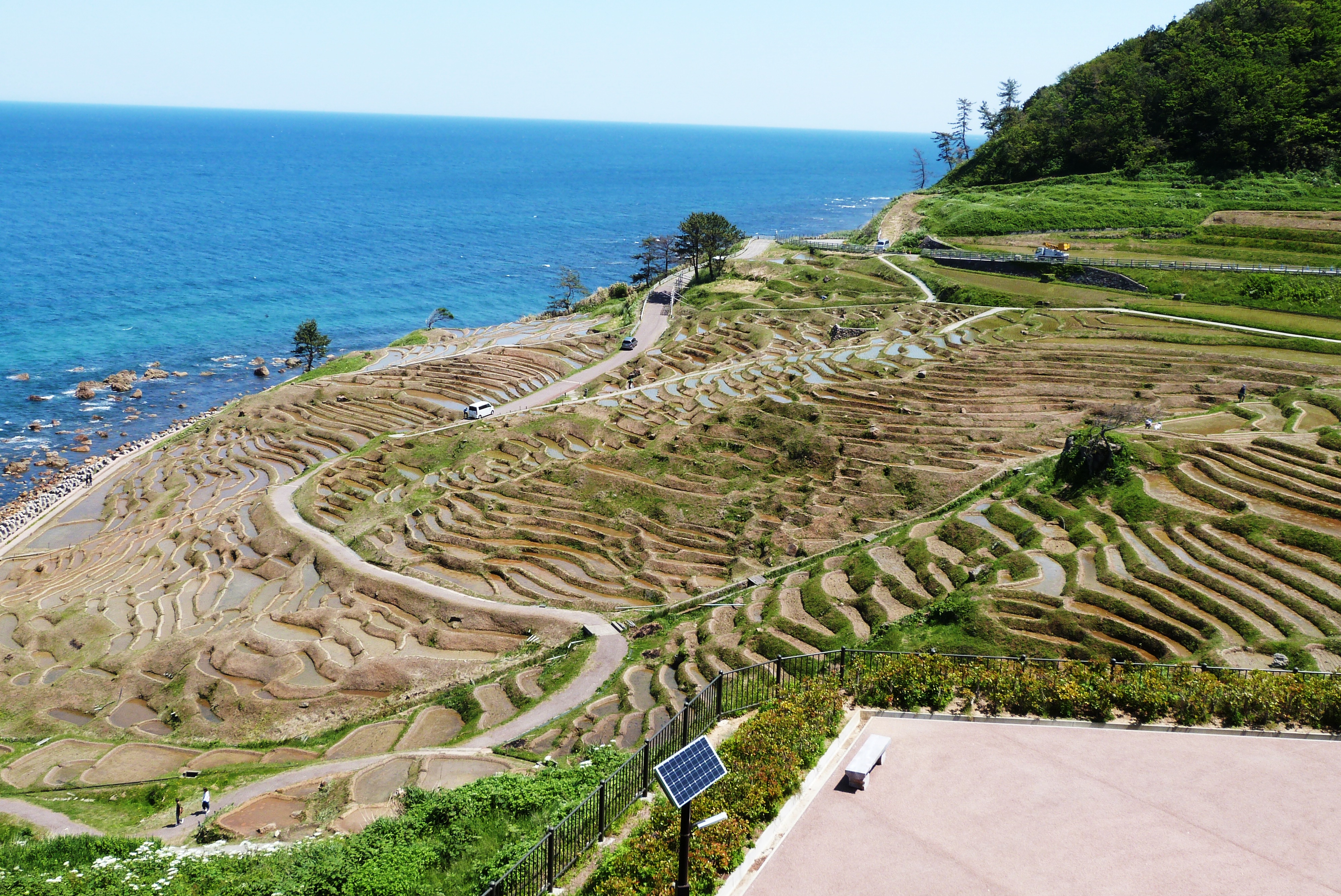 Shiroyone Senmaida Rice paddies in the Noto Peninsula in NW Honshu Japan. Tended by locals with hand tools. An incredible place to tour by bicycle.