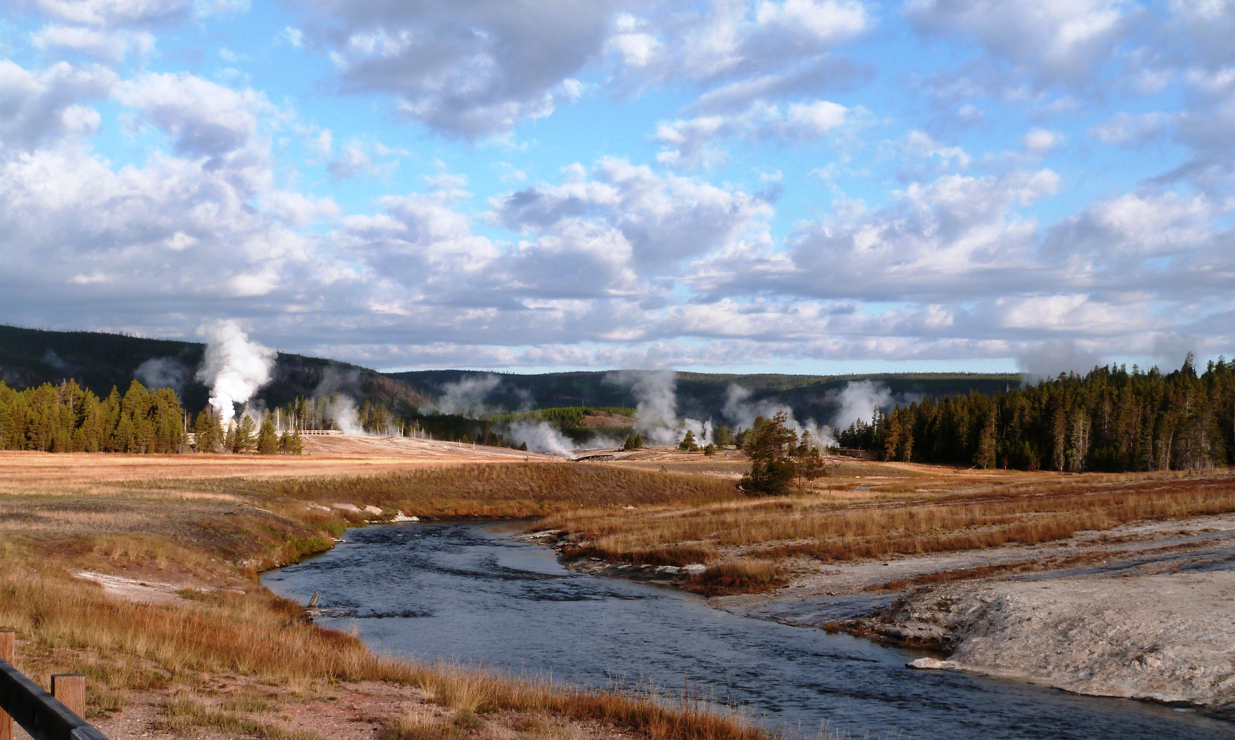 Just a few of the Hot Springs around Old Faithful, which erupts every two hours. An amazing place with 500 geysers and 5000 thermal features in 9,000 sq. km.