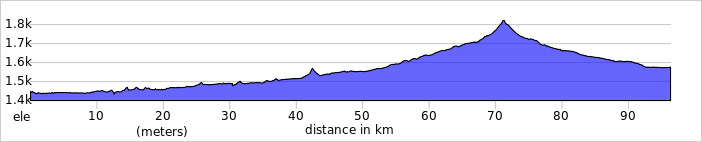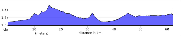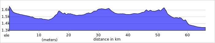 The terrain is variable. Much is rolling pastureland, but there are some steeper climbs off road.