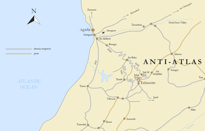 Our base is 4 kms north of Tafroute in the Ameln Valley. Here there is an atmosphere of calm and many foreigners are attracted to the area because of the astonishing landscape, mild winters and the numerous outdoor activities that are available all year round.