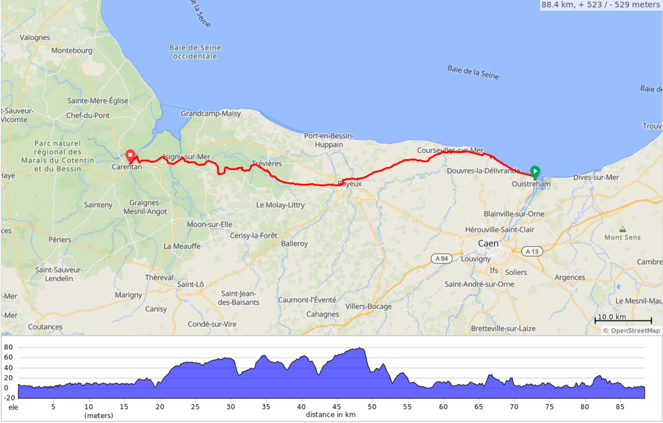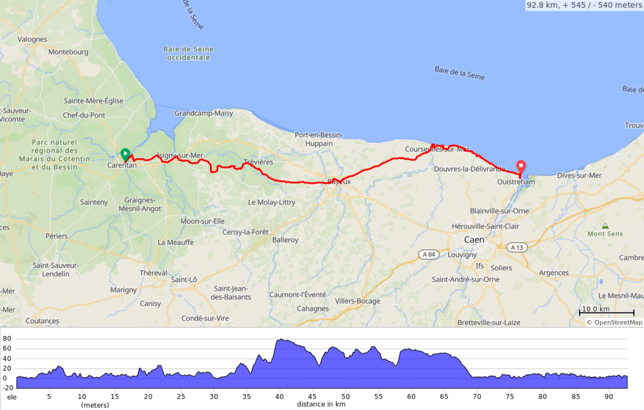 Another unladen day ride, following the east coast and calling first at Utah Beach. For lunch, we’ll be in the harbour village of St-Vaast-la-Hougue. We then return south by an inland route to visit Ste-Mère-Eglise on our way back to Carentan. (A visit to the Airborne Museum might appeal to some.)