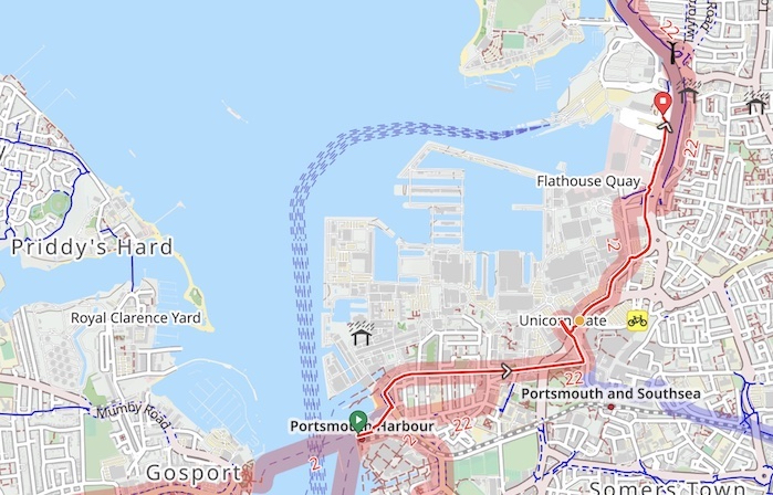 You will have to make your own arrangements for travel to and from the start and end point of the tour at Portsmouth Cross Channel Ferry Terminal. Portsmouth Harbour train station is less than 2 miles from the terminal. National Cycle Route 22 passes close to the ferry terminal cycle entrance.