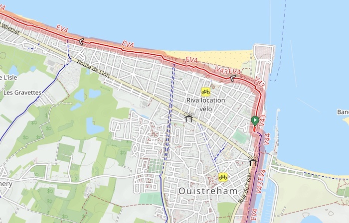 I have called this a Tarmac and Gravel Tour because I want cyclists to choose tyres which are suitable for rough surfaces on the cycle paths. The Tarmac roads are mainly smooth, but some of the lanes have broken gravelly surfaces with potholes. Members of the group usually ride together but, if participants prefer, they will be equipped with sufficient maps and directions to ride on ahead or drop behind and catch up later. We will be carrying our own luggage on the journey From Ouistreham to Carentan and on our return. When day riding from our base, we will be unladen and the main group will travel at an average speed of about 20kph (12mph). We will have stops for coffee, lunch or tea and to admire the landscapes, seascapes, buildings of interest and the like. Friday can be a free day, as described above, but there is nothing to prevent participants from remaining at the campsite to rest on any of the days in Carentan.