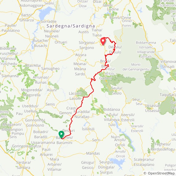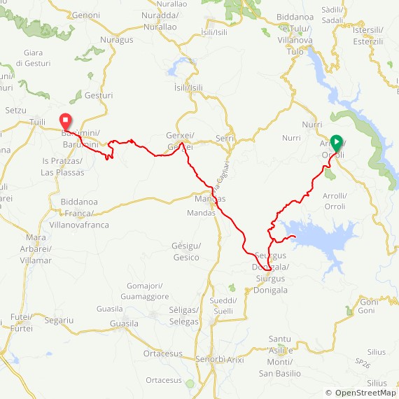 Leaving Ulassai we ride to the Nuraghe Su Marmori then on to Nuraghe Arubbiu, one of the best preserved nuraghe in Sardinia. It is a complex of five towers. The route follows deserted roads through the mountains.