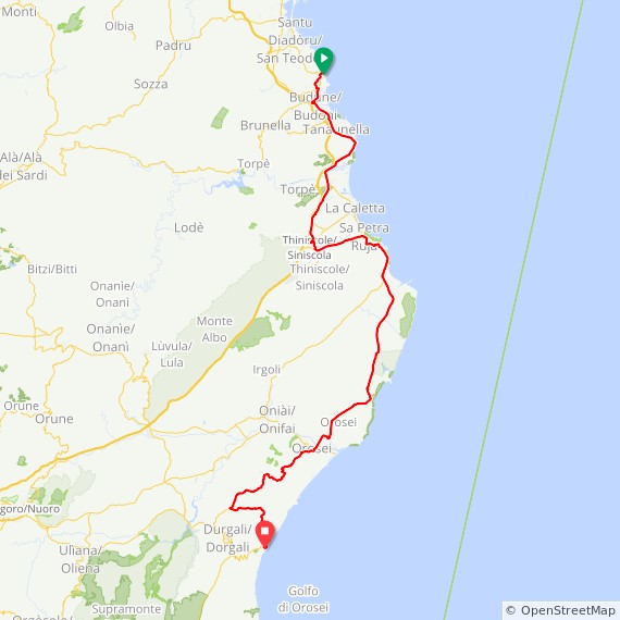 Ride along the SS125 southwards. The route goes inland as the coast is too rocky for road transport. Back to the coast at Santa Maria.