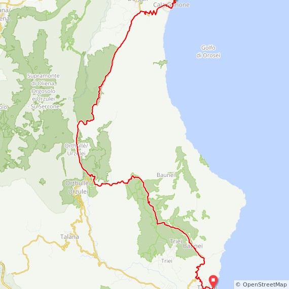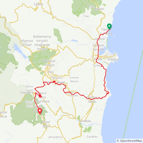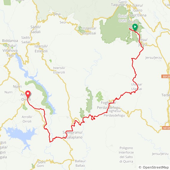 Ride to Tortoli following the SS125, then head coastwards, visiting the Nuraghe S’Ortali. At 46 km, we can visit bronze age tombs in the Parco Archeologico e Naturalistico del Bosco Selèni. Cycling through the mountains we arrive at Ulassai, a typical mountain village with an amazing cave complex just above the town.