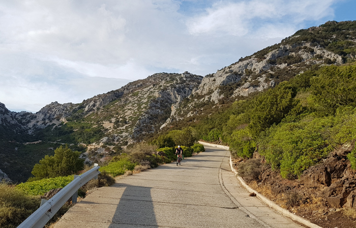 We ride south along the SS125, carved out of the mountains by Piedmontese engineers in the 19th century and back to the coast at Cala Gonone