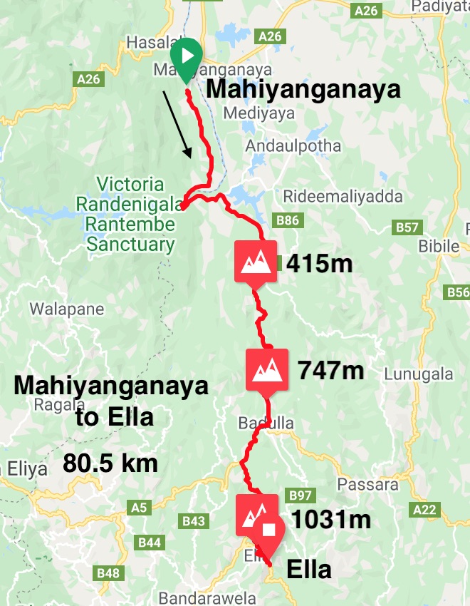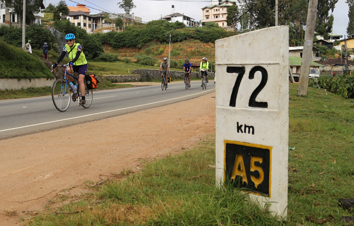 A shorter 81 km today, but with 1600 m of ascent, this is our first day cycling in Sri Lankas central mountain area. Ella, located at an altitude of 1041 m, seems to be everyone’s favourite hill-country village. The area has a rich bio-diversity, dense with numerous varieties of flora and fauna. Ella is surrounded by hills covered with cloud forests and tea plantations. The town has a cooler climate than surrounding lowlands, due to its elevation.