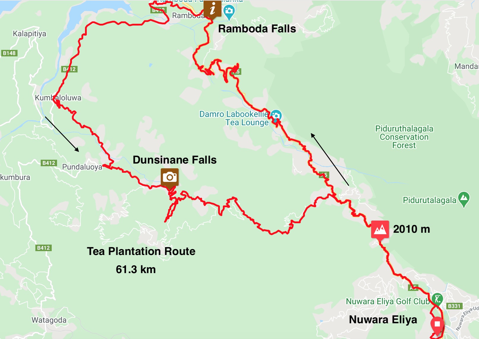 A lovely sweeping descent will take you to Damro Labookellie Tea Centre situated at an elevation of 1500 m. There will be an opportunity to participate in a short tour of the factory, before sampling a cup of tea. The ride back takes you past more tea estates through quiet hilly scenery