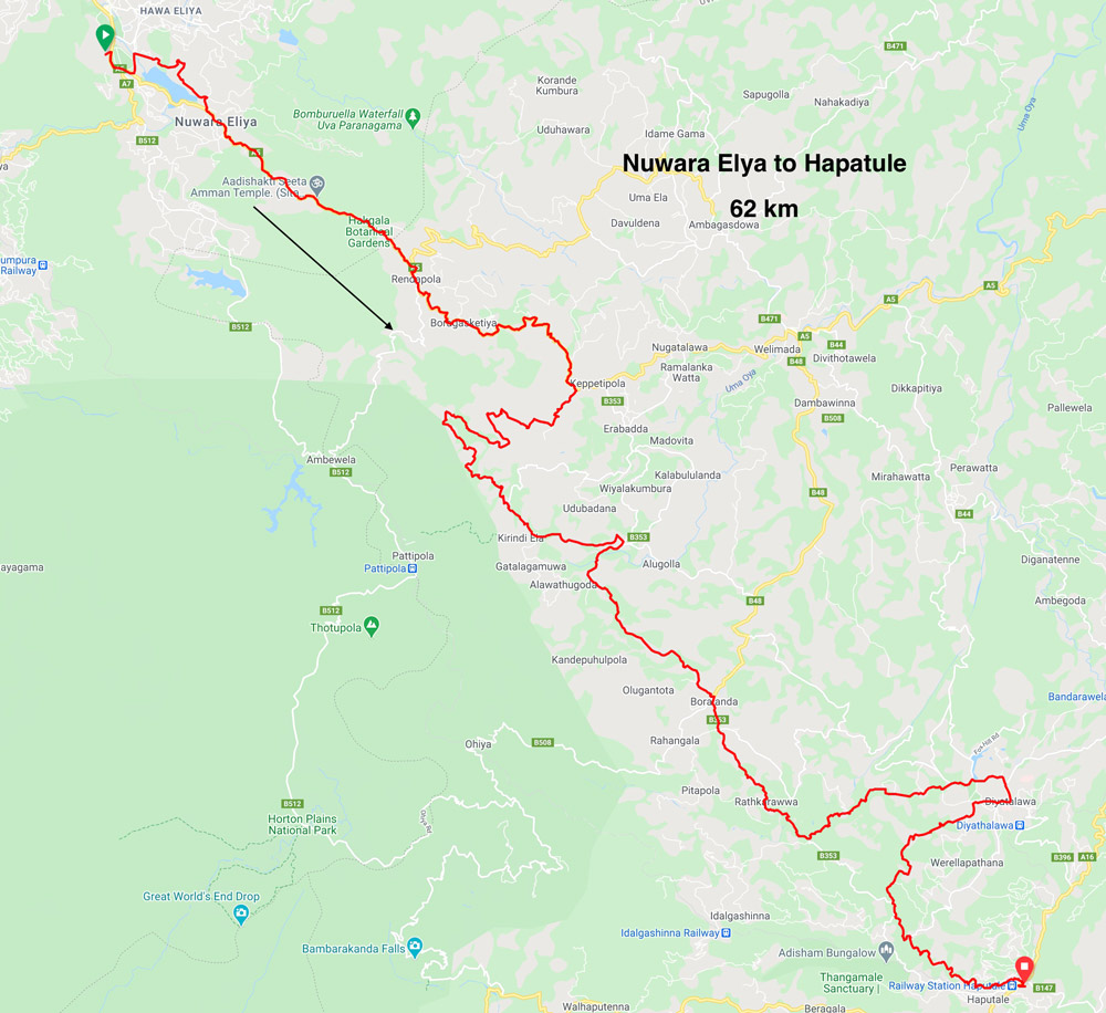 We leave Nuwara Eliya behind and after 4.5 km, begin our 13 km descent, hopefully the mists won't spoil the beautiful mountain views. Our route today takes us through areas of rich bio-diversity dense with numerous varieties of flora and fauna. The latter part of the day undulates through tea plantations. We overnight in Haputale, situated at an elevation is 1431 m and is surrounded by hills covered with cloud forests. The town has a cooler climate than its surroundings, due to its elevation. The Haputale pass allows views across the southern plains of Sri Lanka and the south-west boundary of Uva basin is marked by the Haputale mountain ridges, which continue on to Horton Plains and Adam's Peak to the west. In 2010, CNN named Haputale as one of Asia's most overlooked destinations. Our hotel overlooks the plains to the south. You can't quite see where we will end up tomorrow, but you will get a good sense of the initial whizz down, clouds permitting!