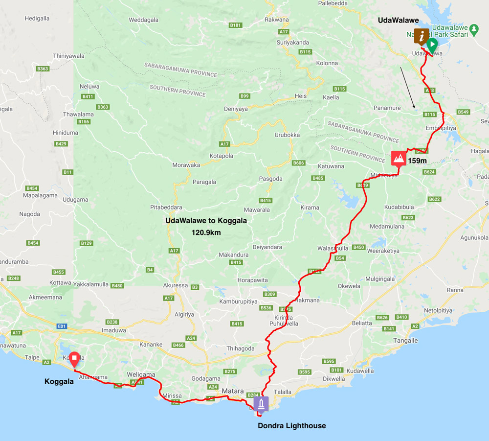 We will continue our route and cycle just over 80 km to reach the coast and the opportunity to once again dip our toes to celebrate completing our End to End and what will be the first glimpse of the Indian Ocean since leaving Mannar Island. Destination is Dondra Head Lighthouse, Sri Lanka's most southerly point.