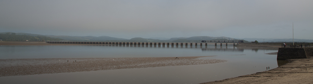 Train crosses Arnside viaduct