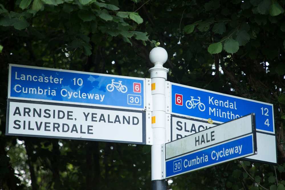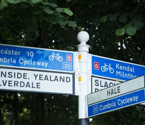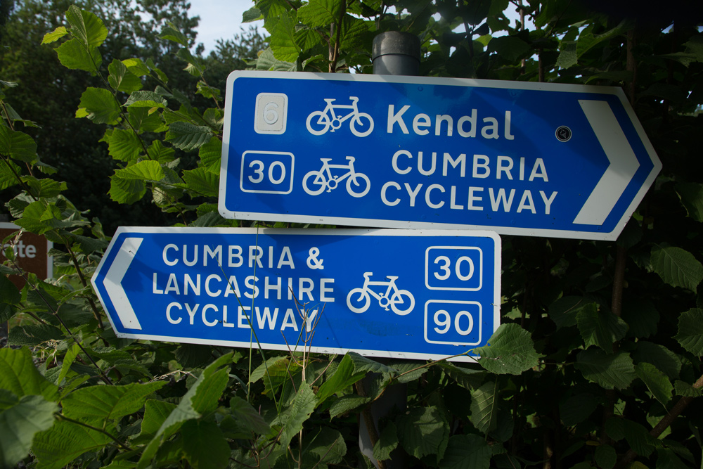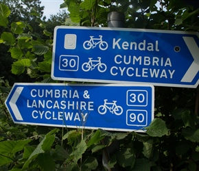 Cumbria and Lancashire Cycleway signs. These were close to the end of this section near Arnside