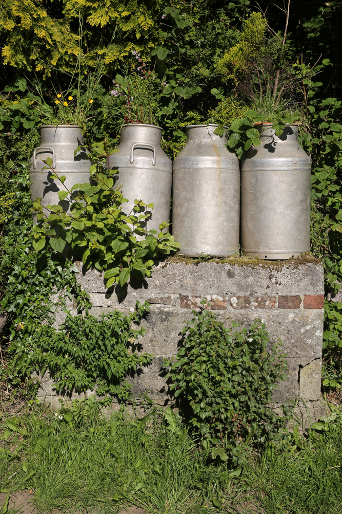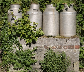 Milk Churns on their orriginal stands, yes folks more hints that this is farming country