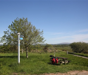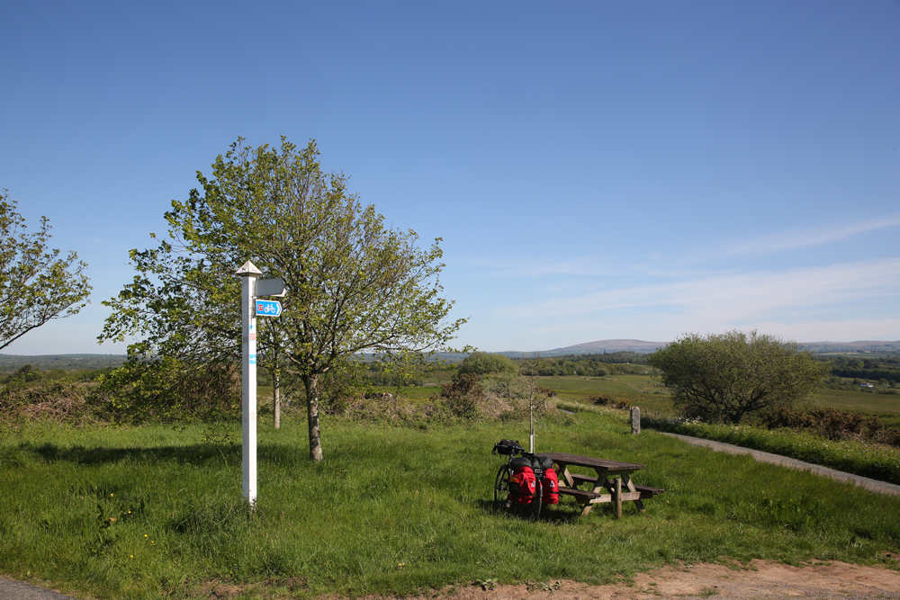 A thoughtfully provided picnic table by the junction close to Hatherleigh Monument