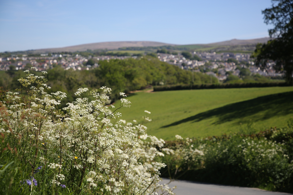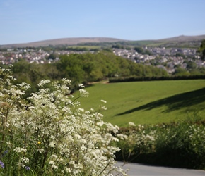 Cow Parsley lights up the view to Okehampton and the Moor beyond