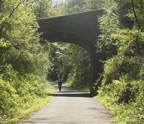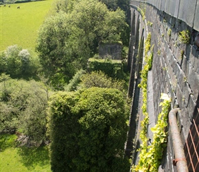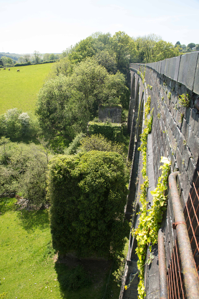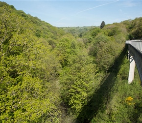 Viaduct view. Spot the orriginal supports for the first bridge where wood was used to hold the rail bed