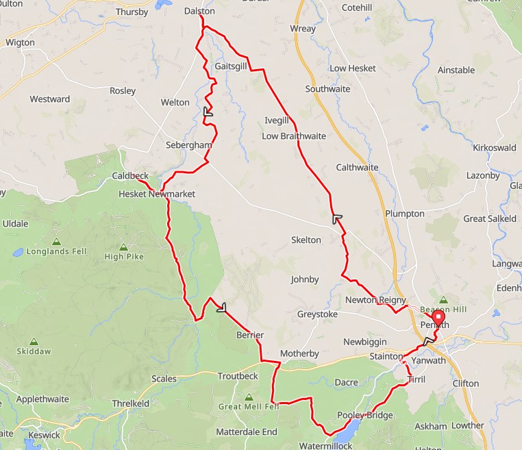 The tour starts and finishes in Penrith. The nearest rail station is Penrith.