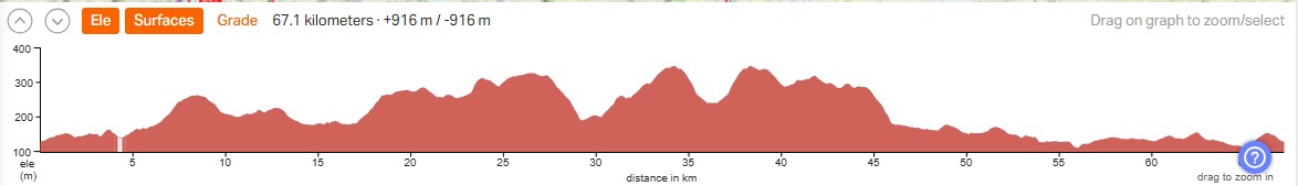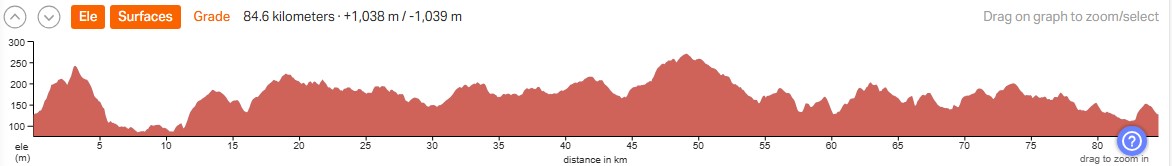 Most of each day will be spent cycling, there is no rest day. People will be able to ride with the led group at around 19-23 km/h (on level sections) or by themselves, usually meeting up at cafes for lunch and refreshment breaks.