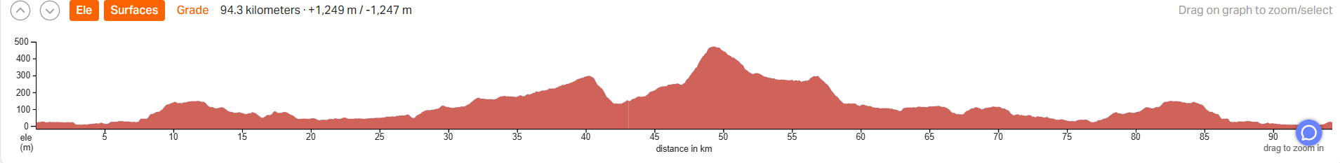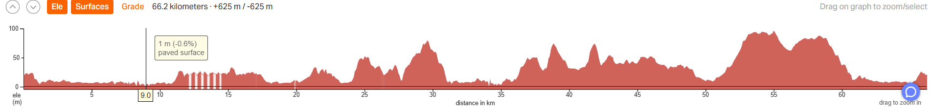 We'll mainly be on quiet country roads and minor urban roads plus sections of cycle path.