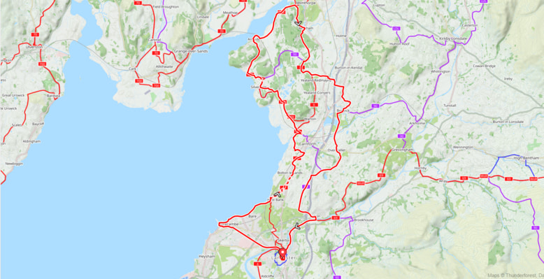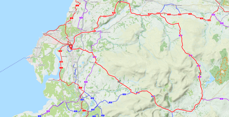 We will ride through the unspoilt Forest Of Bowland and along stretches of The Way Of The Roses Coast to Coast cycle route, travel into the Yorkshire Dales National Park and ride along Morecambe Bay past Arnside up into Cumbria.