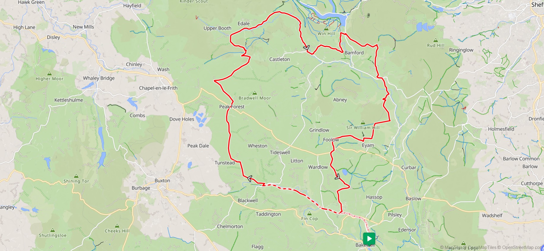 The next very scenic but hilly stretch taking in the Roaches can be bypassed if preferred. Otherwise we will explore the dramatic rock outcrops, go into Meerbrook by Tittesworth Reservoir and up over Morridge. After this the hills are lower as we return to the White Peak and pass through Youlgreave on our return to Bakewell. Many of the villages have well dressings to admire at this time of year.